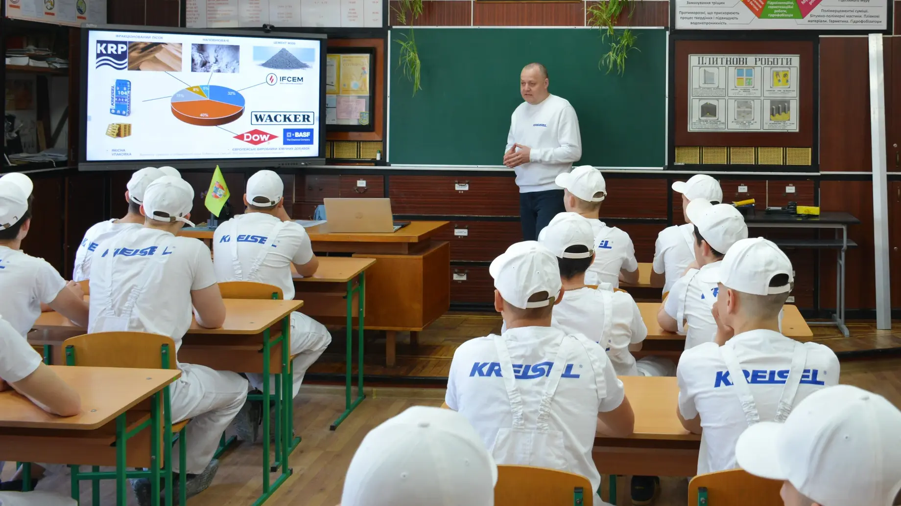 03 березня 2026 року керівник лабораторії контролю якості компанії КРАЙЗЕЛЬ, Тарас Сех, провів виробниче навчання для студентів Львівського ВПУ комп’ютерних технологій та будівництва. Темою заходу стало практичне заняття «Сучасні технології декоративного оздоблення: нанесення структурної фарби KREISEL 002».